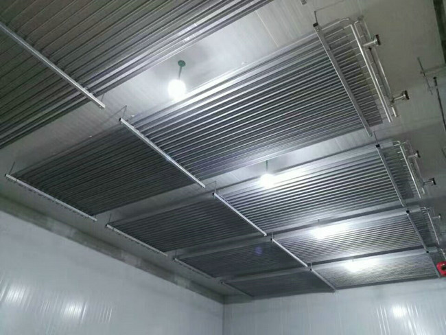 還拿這座小型冷庫舉例,因全封閉壓縮機(jī)功率小,價格相對便宜,對小型冷庫的投資來說從價格上也非常適宜。在小型冷庫的冷庫設(shè)計方案選擇蒸發(fā)器時,中、低溫冷庫選用無縫鋼管制作的蒸發(fā)排管為主,其特點(diǎn)是恒溫效果好,并能適時蓄冷;高溫冷庫以選用冷風(fēng)機(jī)為蒸發(fā)器,其特點(diǎn)是降溫速度快,但易造成冷藏品的水分損耗。