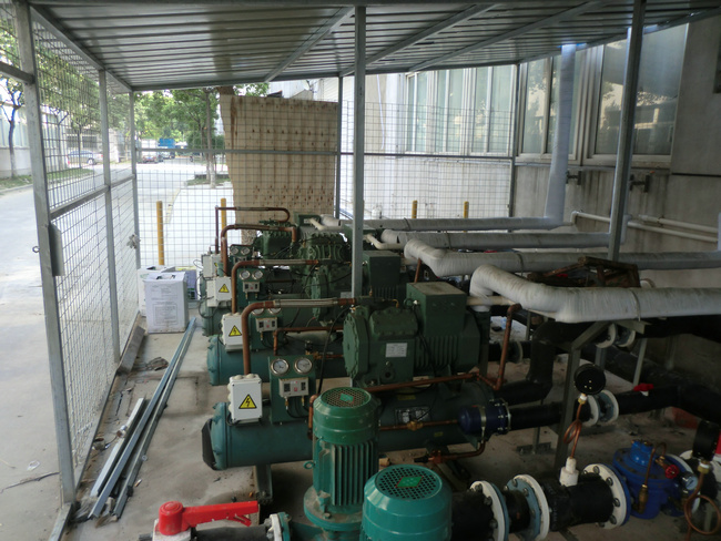 2.半封閉式制冷壓縮機的電機置入壓縮機內,雙層機體結構和特殊設計的排氣腔及內置式油分離器,使得其噪聲特別小。壓縮機內螺桿轉子為簡單旋轉運動,因此壓縮機振動也特別小。英國勞埃士船級社確認的噪聲及震動實測值分別為75dB(A)和5u。
